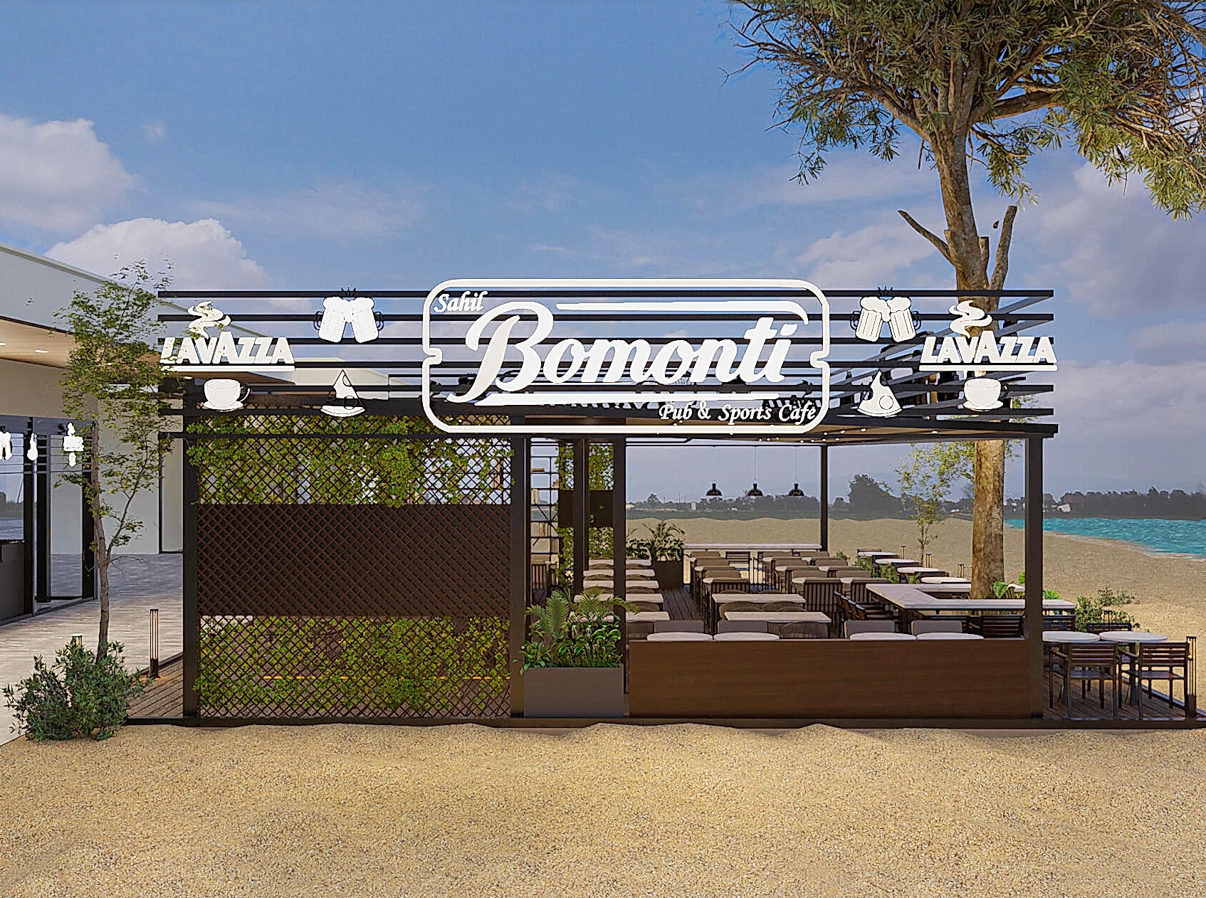 Antalya BeachPark’ta konumlanan Mola Concept için konsept kafe tasarımı gerçekleştirdik. Estetik detaylarla özgün, işlevsel ve kullanıcı dostu bir mekan oluşturduk.